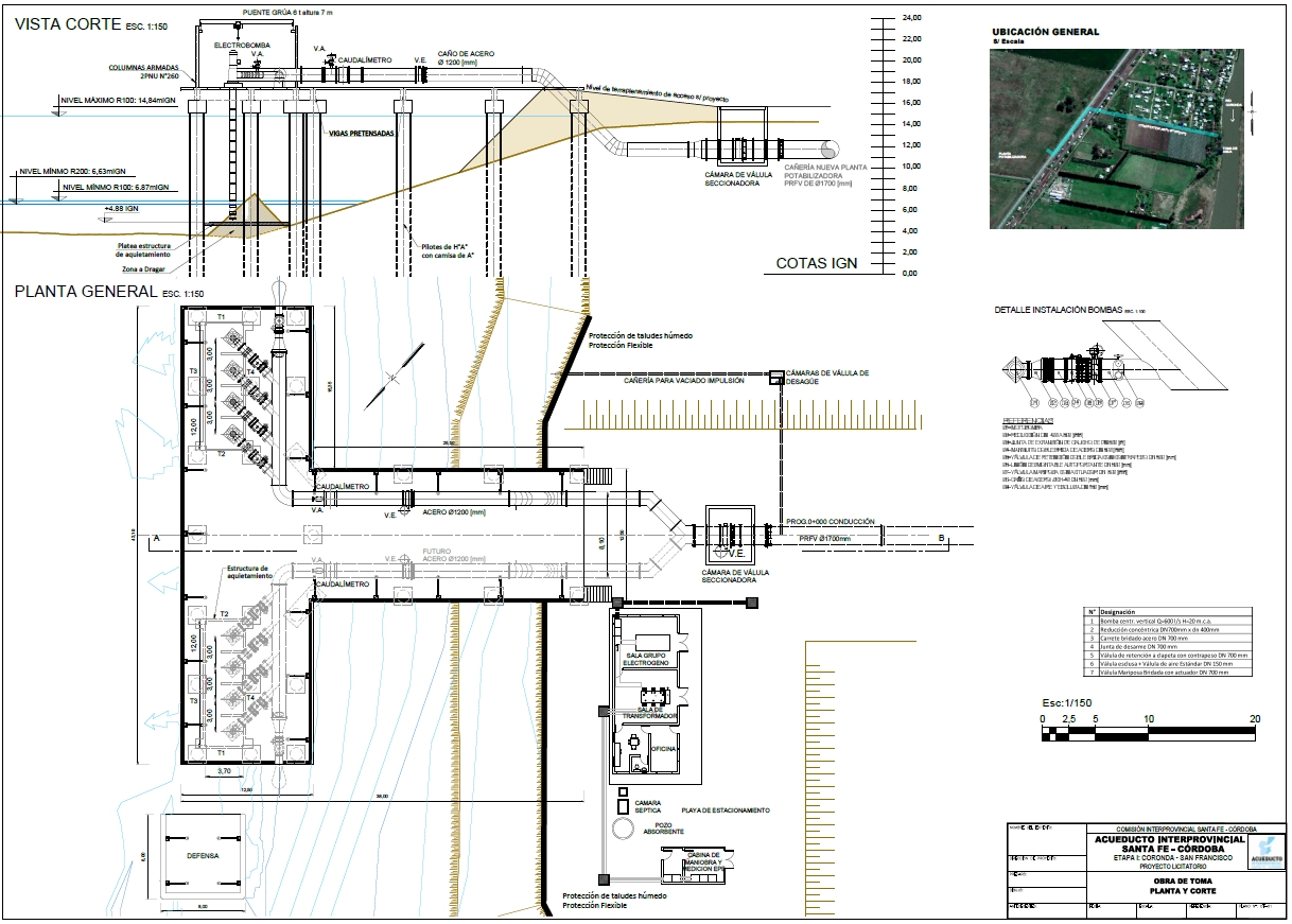 Se está desarrollando actualmente el proyecto de readecuación de la Obra de Toma y Acueducto de Agua Cruda del Acueducto Coronda, en su nueva concepción, con abastecimiento a las localidades de la provincia de Santa Fe y a Córdoba.